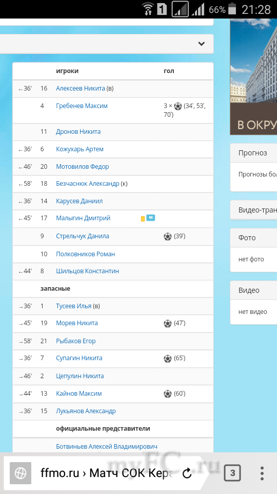 12 тур УОР-5- Выбор-Одинцово 5-0 голы забивали: Стрельчук Данила-3, Кайнов Максим, Шильцов Константин Вратари: Алексеев, Тусеев
