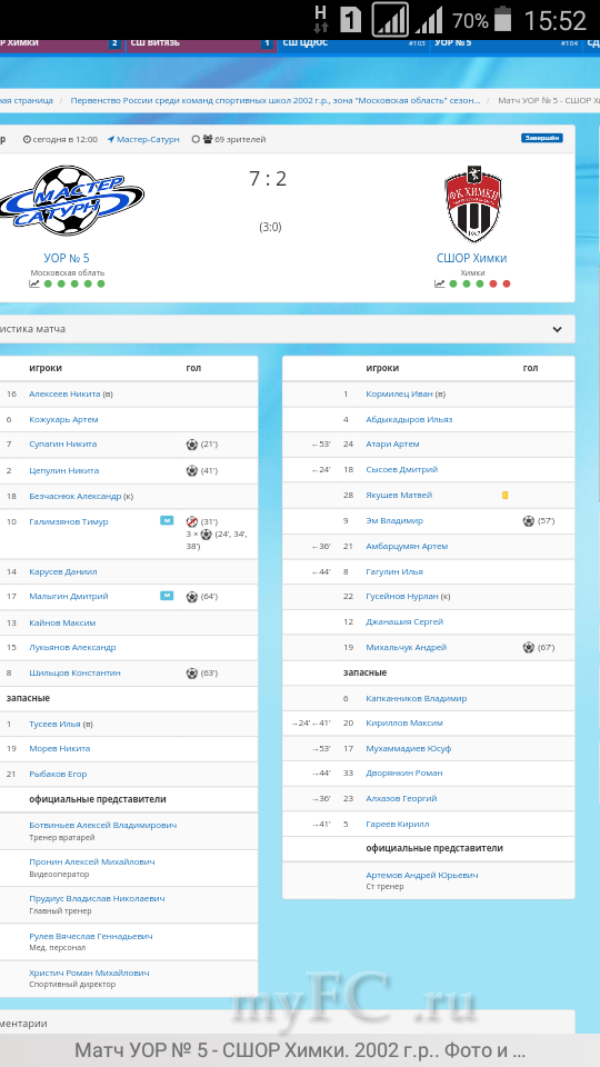 6 тур Химки — УОР № 5 1-7 голы забивали: Карусев Даниил (за Химки)- Дронов Никита, Стрельчук Данила-3, Фасхутдинов Айрат-2, Кайнов Максим