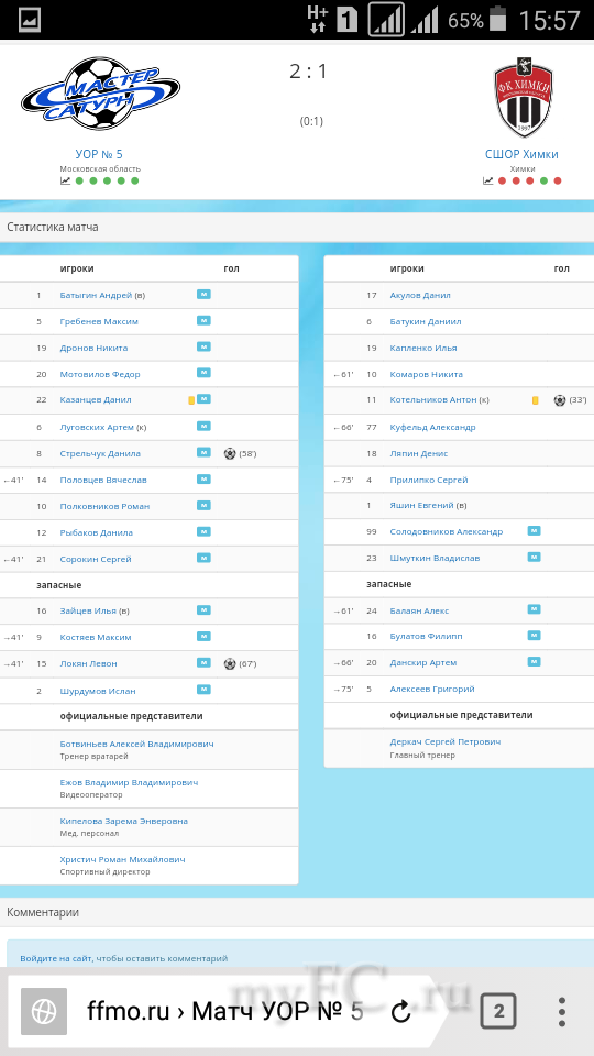 15 тур УОР-5- Сергиев Посад 3-0 голы забивали: Дронов Никита, Полковников Роман-2 Вратари: Алексеев