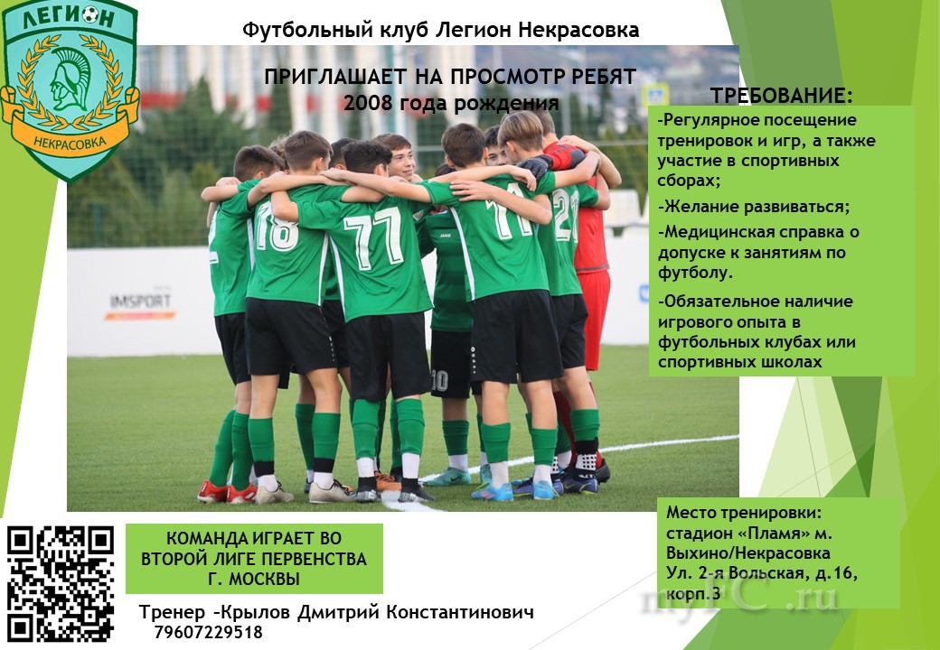 Футбольный клуб Легион Некрасовка проводит набор ребят 2008 г.р