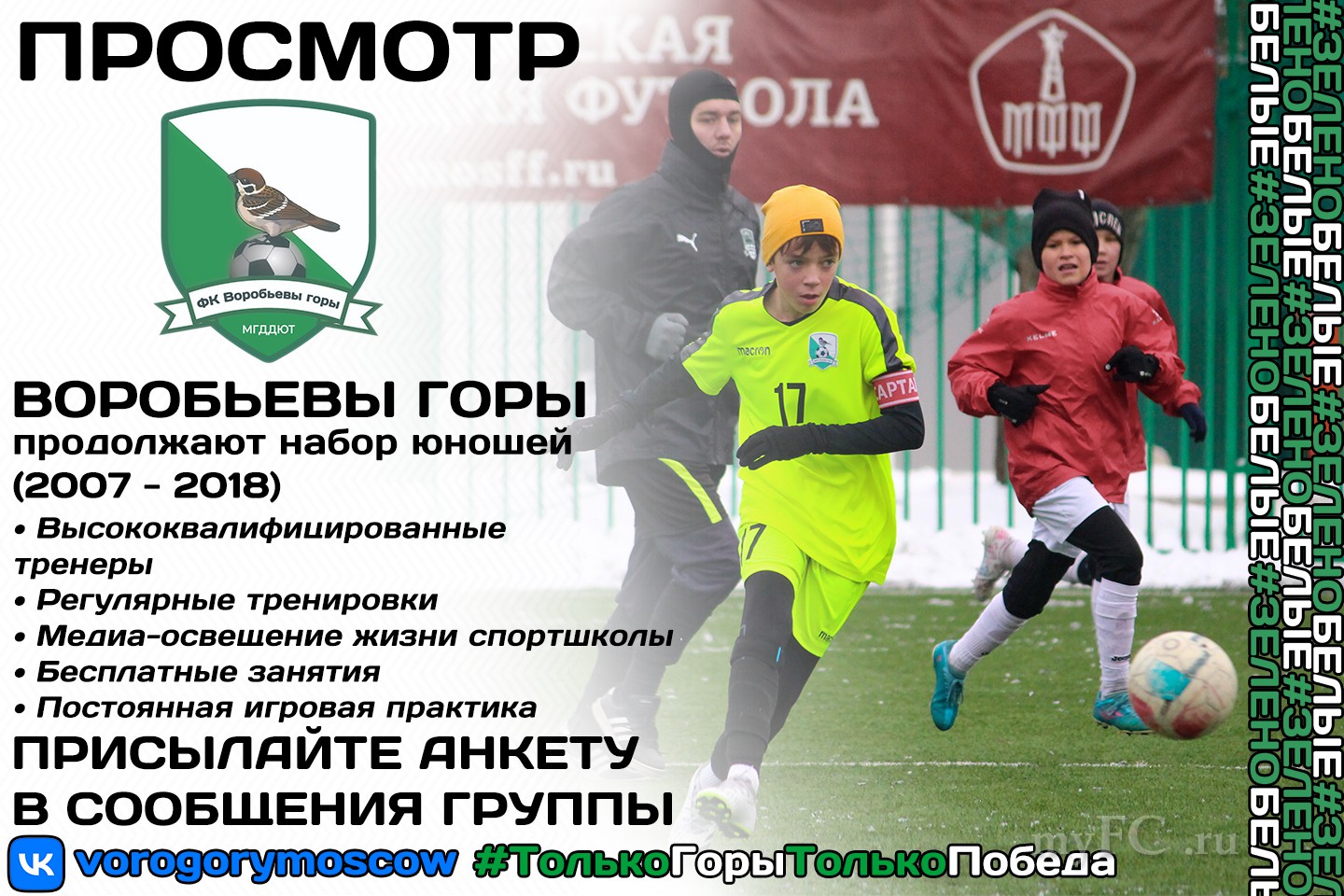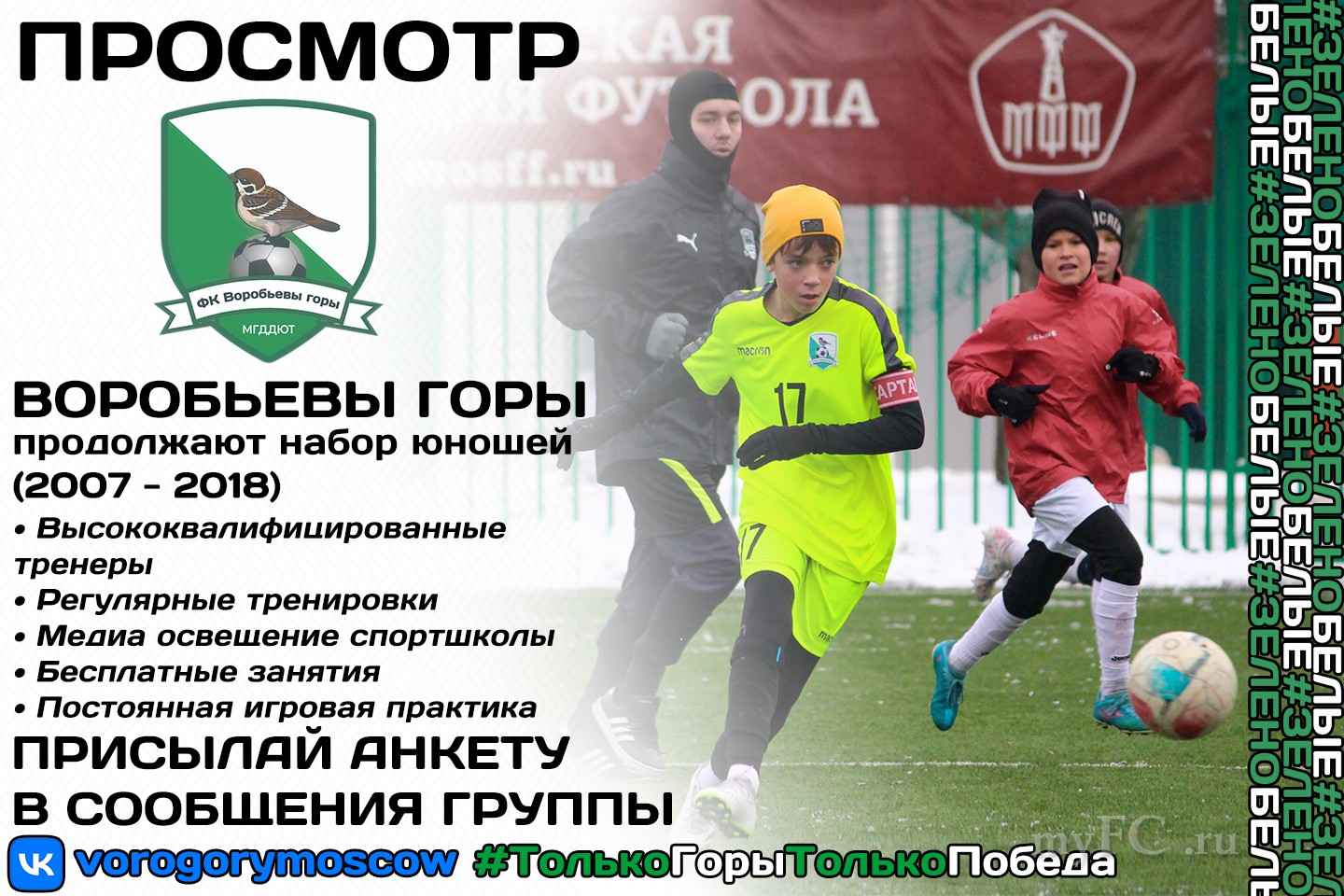 Воробьевы Горы ПРИГЛАШАЮТ ЮНОШЕЙ 07-18 г. р. НА ВСЕ ПОЗИЦИИ