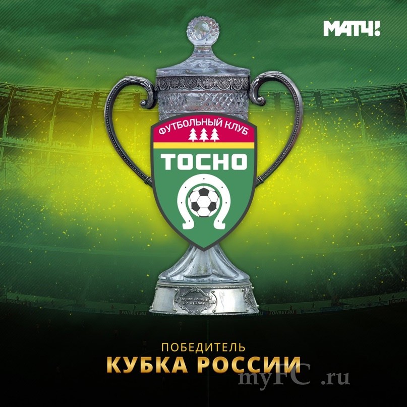 ФК "Тосно" победитель Кубка России по футболу 2018г. Один из десяти клубов, выигрывавших Кубок России, наряду с Зенитом, ЦСКА, Локомотивом, Спартаком, Динамо).