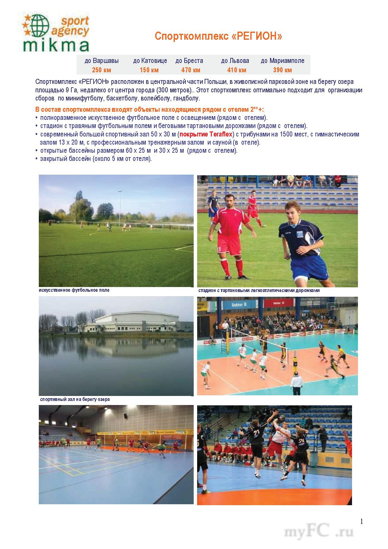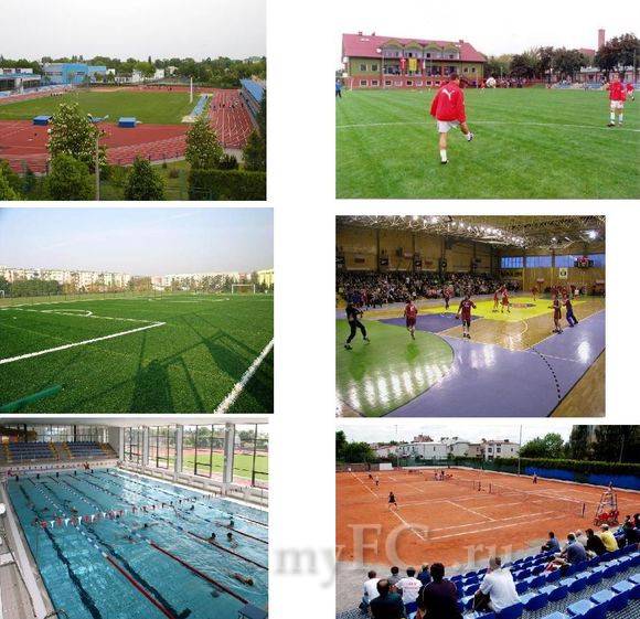Спорткомплекс "Кристалл" «КРИСТАЛЛ» один из современных спорткомплексов Польши, все здания и сооружения выполнены только из натуральных материалов – стекла, дерева, гранита. Удобное расположение в центре Польши( около 1,5 часа по автостраде от Варшавы) способствует тому, что данный спорткомплекс является самым популярным среди команд игровых видов спорта для проведения сборов. Прага-430 км., Варшава-160 км., Минск-715 км., Брест-360 км., Гродно-450 км., Львов-455 км., Мариамполе-520 км. Объекты спорткомплекса рядом с новым отелем: - Искус. футбольное поле 105x68 м (трава DD Challenge PRO 50 – как в Лужниках) с подогревом и освещением 1000 Lux. - Стадион с травяным футбольным полем отличного качества и тартановыми беговыми дорожками. - 2 полно-размерных травяных тренировочных поля №1 и №2 отличного качества – до 1,0 км. - 2 полно-размерных травяных тренировочных поля №3 и №4 отличного качества – до 3 км. - открытая ледовая площадка 40 х 20 м и комплекс теннисных кортов - отель уровня 3*** на 50 мест (2-х и 1-но местные номера) с рестораном, винным баром, конференц залом.