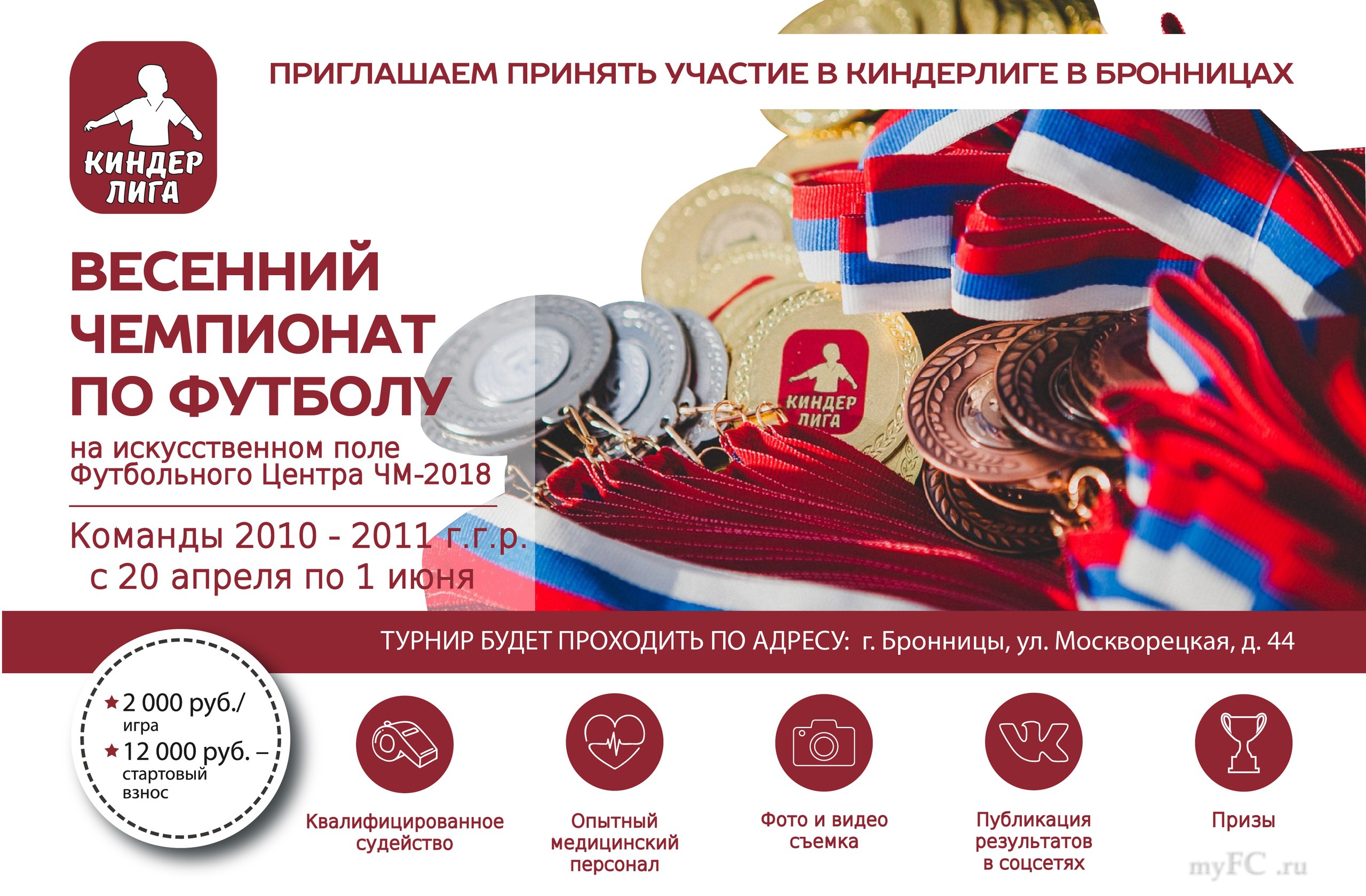 Оргкомитет по проведению Детской Футбольной Лиги «Киндерлига» приглашает команды принять участие в Весеннем Чемпионате по футболу в возрастных группах 2010, 2011 г.г.р.