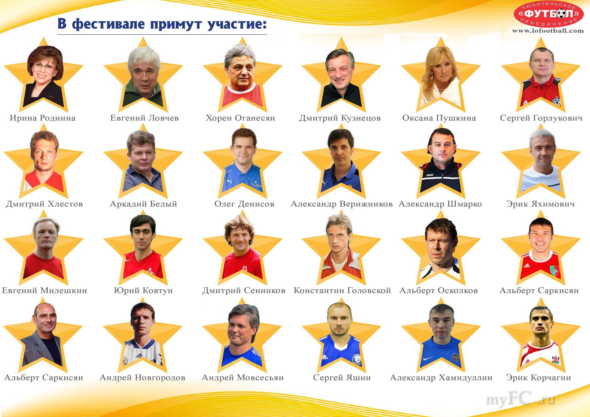 VIP ГОСТИ и ФУТБОЛИСТЫ: Евгений ЛОВЧЕВ, Ирина РОДНИНА, Сергей ГОРЛУКОВИЧ, Оксана ПУШКИНА, Юрий КОВТУН, Хорен ОГАНЕСЯН, Олег ДЕНИСОВ, Аркадий БЕЛЫЙ, Александр ВЕРИЖНИКОВ, Альберт САРКИСЯН, Дмитрий ХЛЕСТОВ, Евгений МИЛЕШКИН, Александр ХАМИДУЛЛИН, Дмитрий КУЗНЕЦОВ, Альберт САРКИСЯН, Эрик ЯХИМОВИЧ, Константин ГОЛОВСКОЙ, Андрей МОВСЕСЬЯН, Эрик КОРЧАГИН, Андрей НОВГОРОДОВ, Альберт ОСКОЛКОВ, Александр ШМАРКО и др..