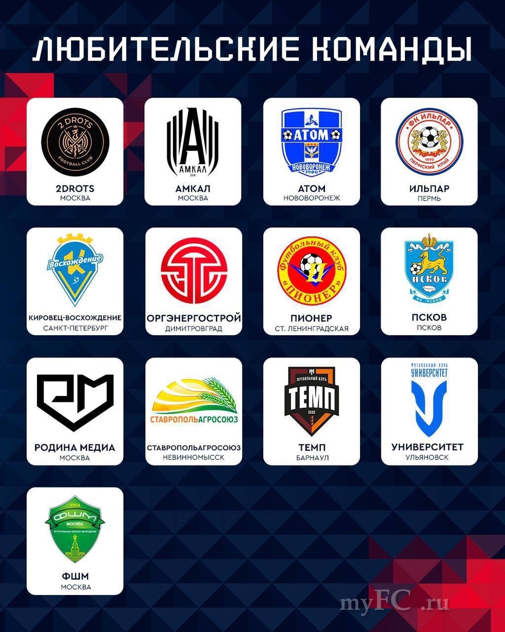 В Пути регионов нового сезона Кубка России стартуют сразу 13 любительских клубов. Некоторые из них запомнились болельщикам яркими результатами в прошлых розыгрышах, для других турнир станет первым профессиональным. Их объединяет серьёзный настрой и желание заявить о себе на всю страну. Знакомим вас с каждым клубом.