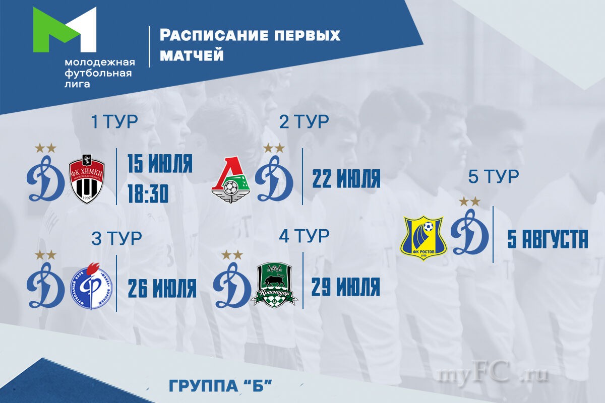 Динамовская «молодёжка» начнёт турнир в группе «Б», где её соперниками стали: «Краснодар», «Локомотив», «Ростов», «Академия Кубань», «Ахмат», «Сочи», «Факел», «Химки» и «Чертаново».