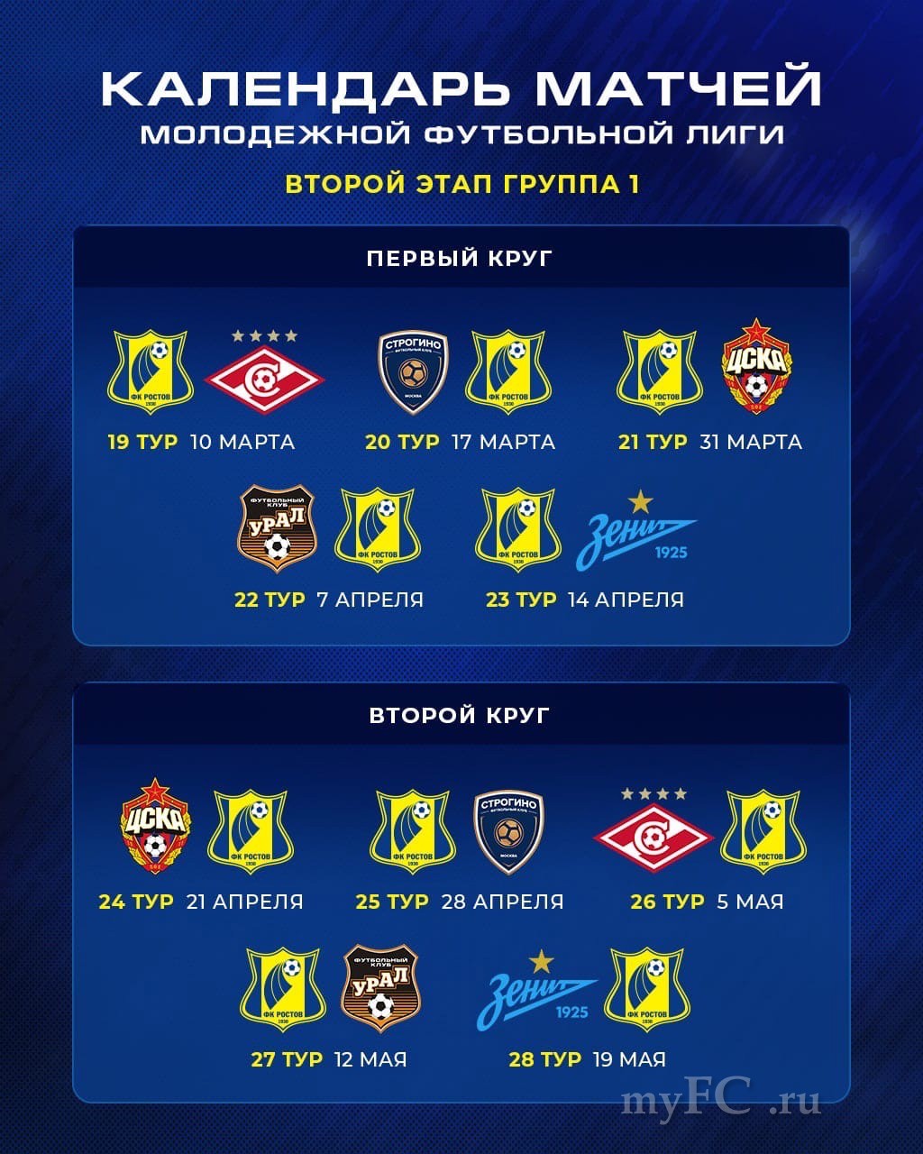 Расписание наших матчей на втором этапе МФЛ!
