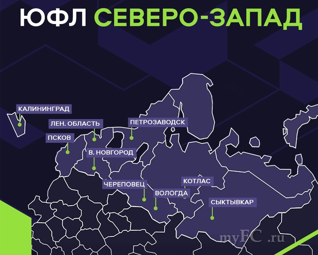 Актуальная на текущий момент география ЮФЛ Северо-Запад в сезоне 2022.