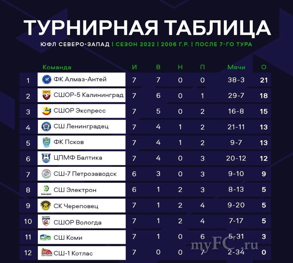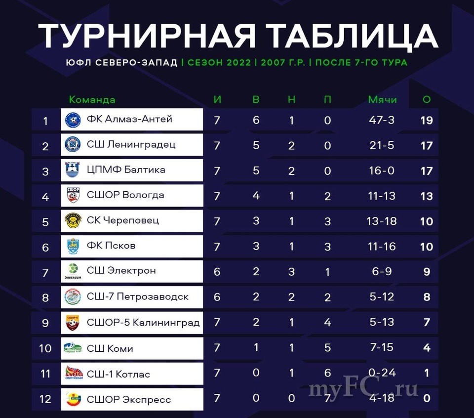 Официальная позиция ЮФЛ Северо-Запад по составу участников сезона 2022 года.