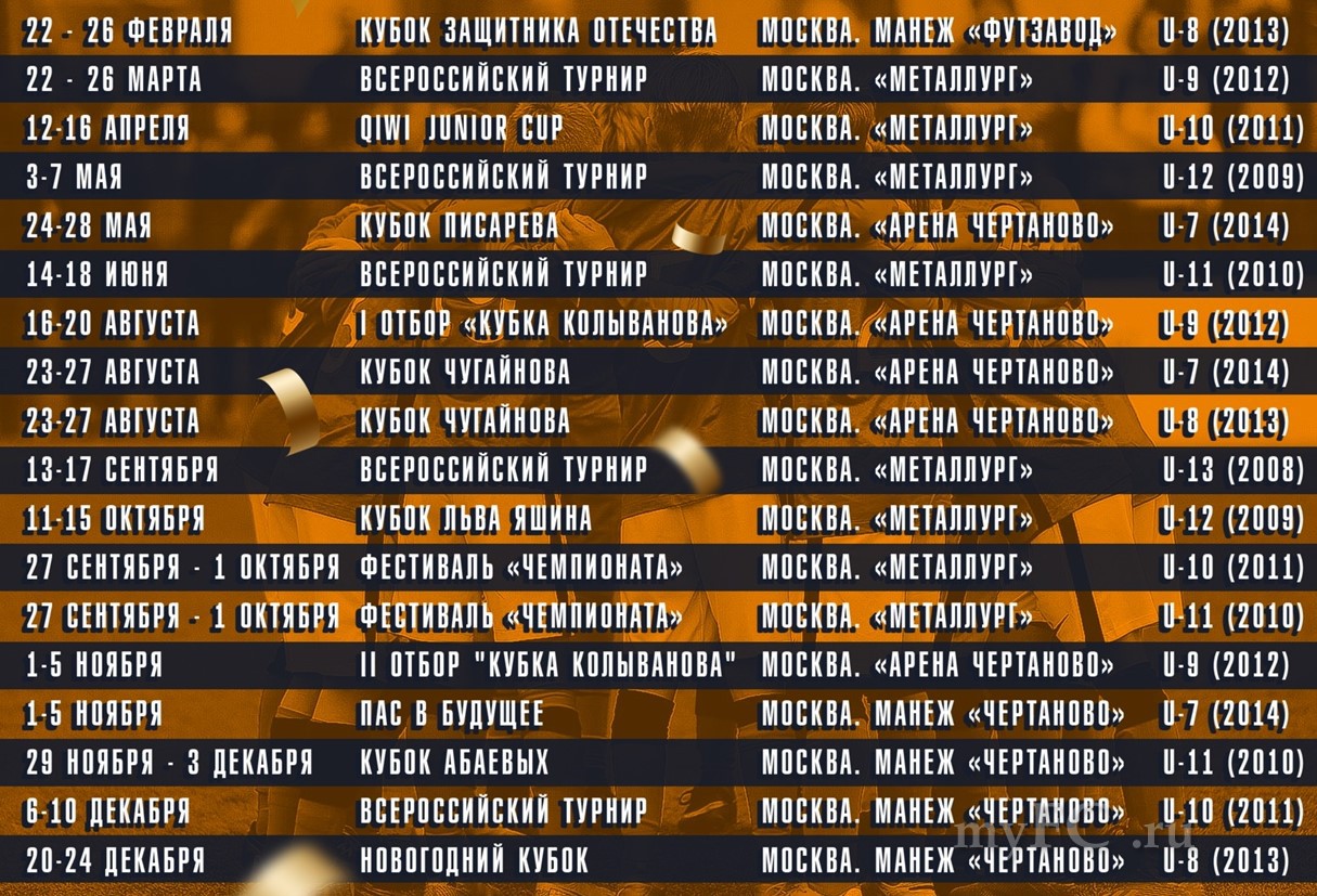 В этом сезоне мы планируем провести около двух десятков турниров для юных футболистов 2008-2014 года рождения — как уже ставших традиционными, так и новых.