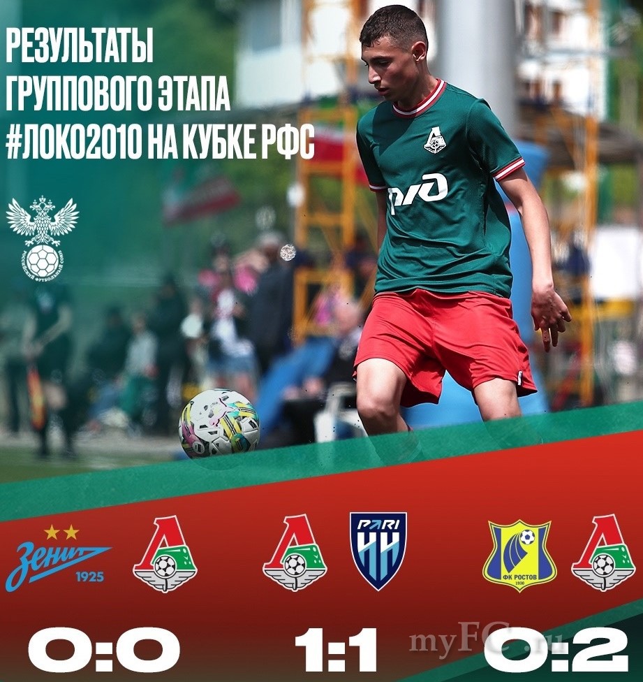 Завершился групповой этап Кубка РФС среди команд 2010 г.р. клубов РПЛ. Наша Академия в непростой группе «А» заняла второе место, при этом не проиграв ни разу. Дважды «Локо» завершил матчи вничью и один раз победил. Победа пришлась на решающий поединок с «Ростовом» - 2:0. На следующей стадии четвертьфинала 10 мая в 10:00 наши ребята сыграют против спартаковцев.