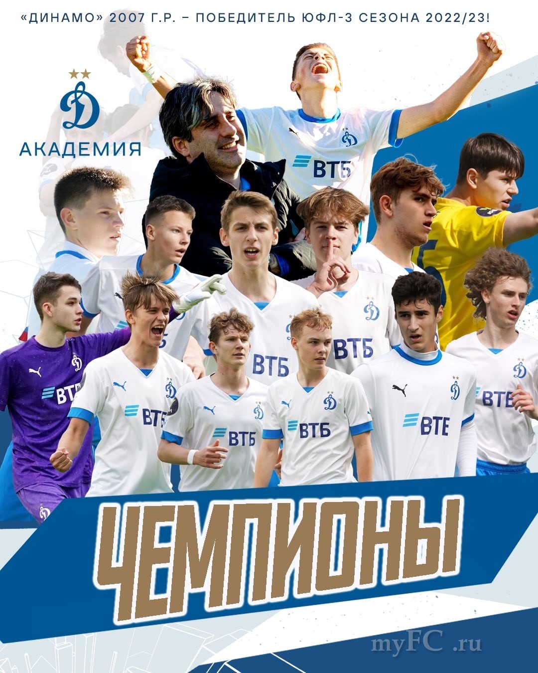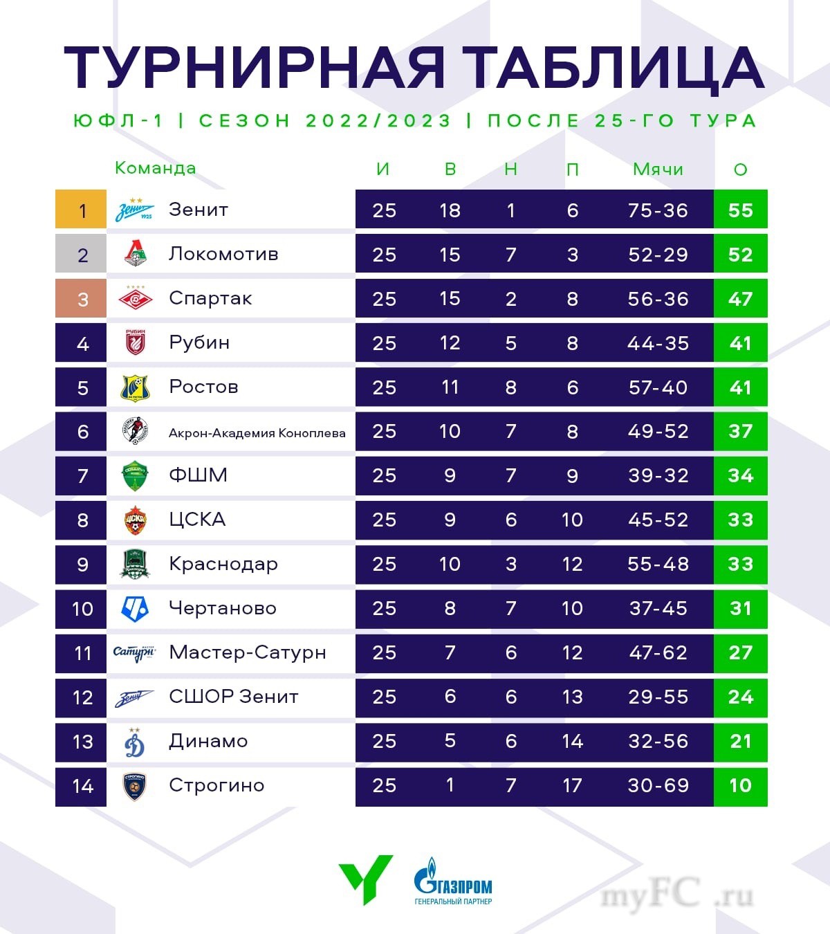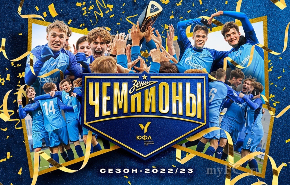 Зенит.«Зенит» U-19 — чемпион Юношеской футбольной лиги-1!6 мая сине-бело-голубые обыграли «Динамо» U-19 в матче 24-го тура ЮФЛ в «Газпром»-Академии и досрочно оформили чемпионство в сезоне-2022/23.