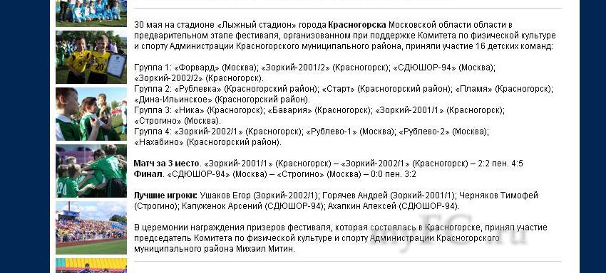 города Красногорска Московской области в предварительном этапе фестиваля, организованном при поддержке Комитета по физической культуре и спорту Администрации Красногорского муниципального района, приняли участие 16 детских команд.