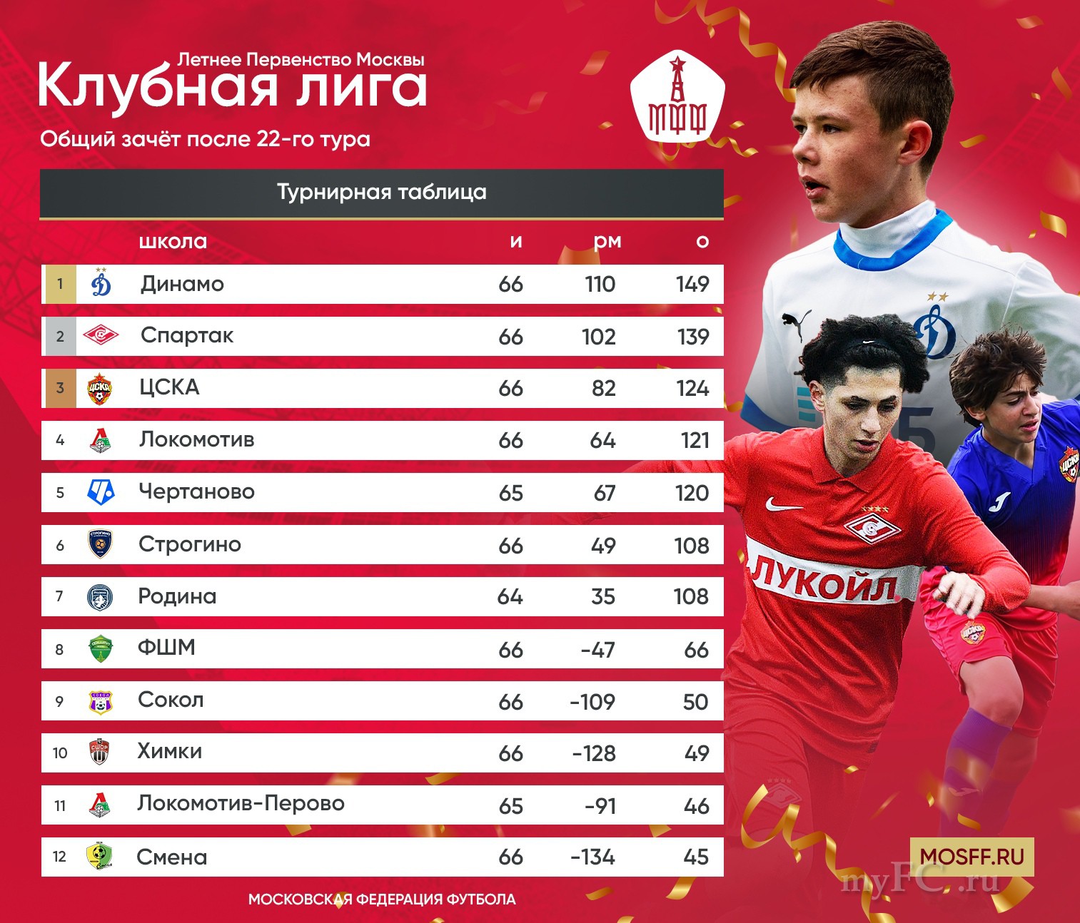 https://academy.fcdm.ru/news/klubnaia-l ... 1667541045Первая Лига: в последнем туре встретимся с «Савёловской».В субботу, 5 ноября, состоится 22-й тур Летнего Первенства «Первой Лиги». Большая часть матчей с «Савёловской» уже была заиграна, так что предстоящий игровой день будет состоять из поединков младших и двух «зачётных» возрастов.