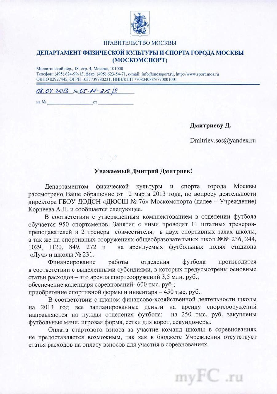 Родители ДЮСШ-75 подавали в суд ,но там(в суде)ехидно улыбались,когда принимали заявление,типа нашли с кем судиться.