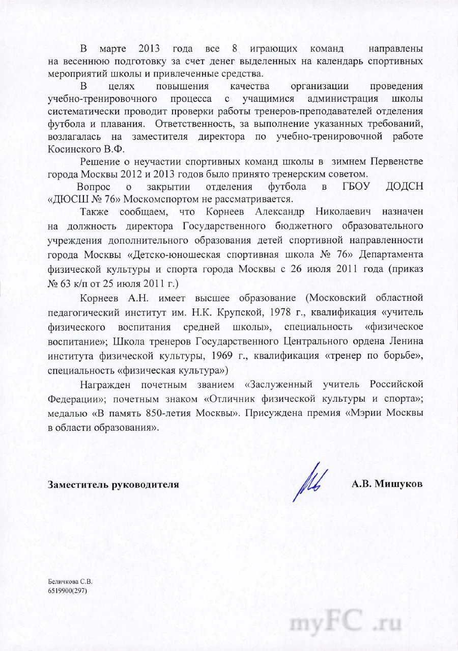 Мишуков(как вы знаете один из главных режиссеров данного сценария из москомспорта) отвечал на письма родителей,что будет реконструкция здания школы в 2012г,но по сей день ничего не изменилось,все в разрухе.