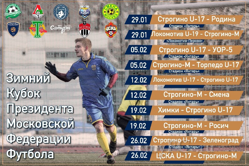 В стартовом туре молодежная команда "Строгино" сыграет на выезде против "Локомотива" U-19. Встреча пройдет 29 января на стадионе "Локомотив-Перово". Начало в 13:00.
