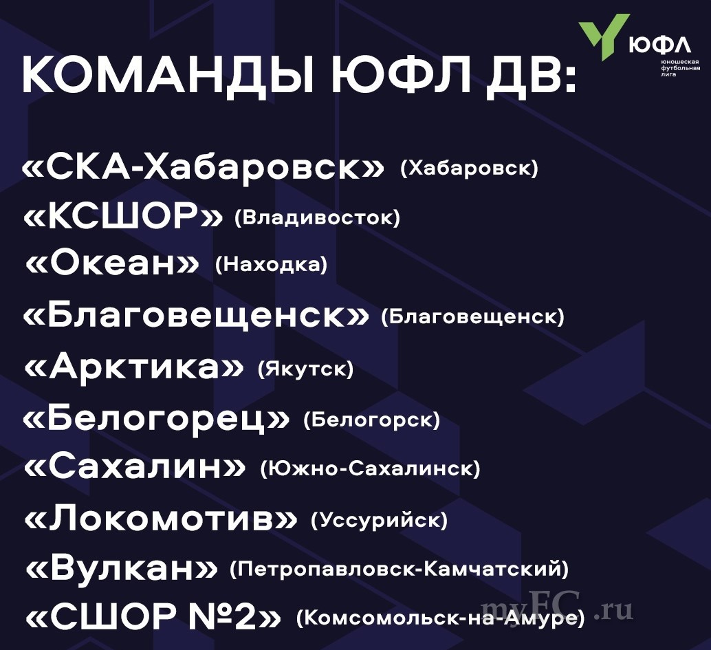 ЮФЛ ДВ - это чемпионат среди лучших футбольных школ Дальнего Востока. В дебютном сезоне в лиге примут участие игроки 2006 года рождения, а всего за звание победителей поборются 10 команд: