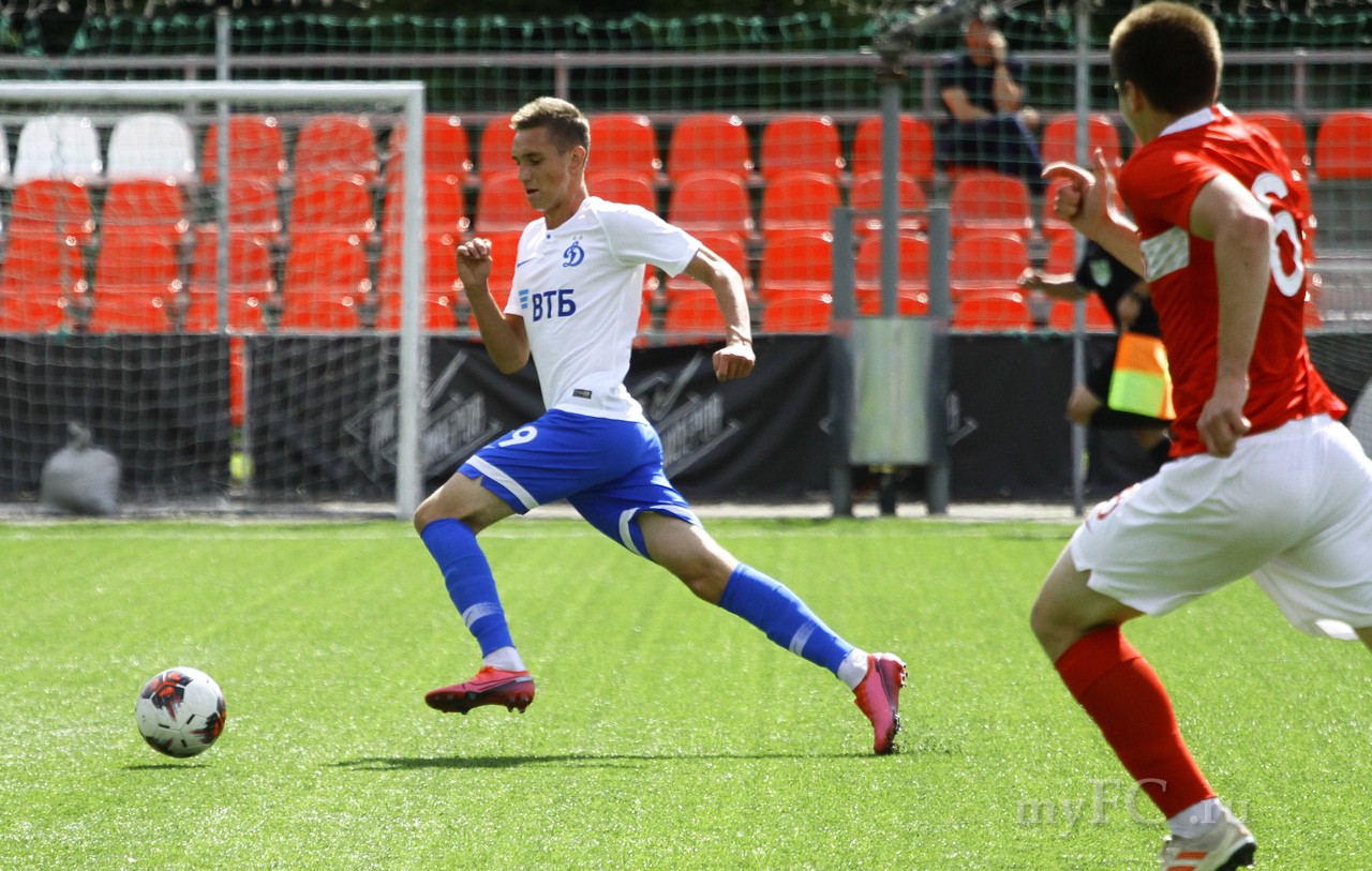 В начале 1-го тайма хозяева завладели преимуществом и практически ничего не позволяли сделать нашим игрокам. Один из моментов «Спартака» завершился взятием ворот: у наших футболистов не получилось перехватить передачу в штрафную, после чего свой момент реализовал нападающий красно-белых – 0:1. Но вторая половина тайма осталась за «Динамо». Образцовая контратака удалась команде Филиппа Соколинского, в которой стоит отметить проход и целенаправленный пас Леона 3айдендзаля, а также точный удар в ближний угол Ивана 3азвонкина, именно десятый номер бело-голубых сумел сравнять счет.