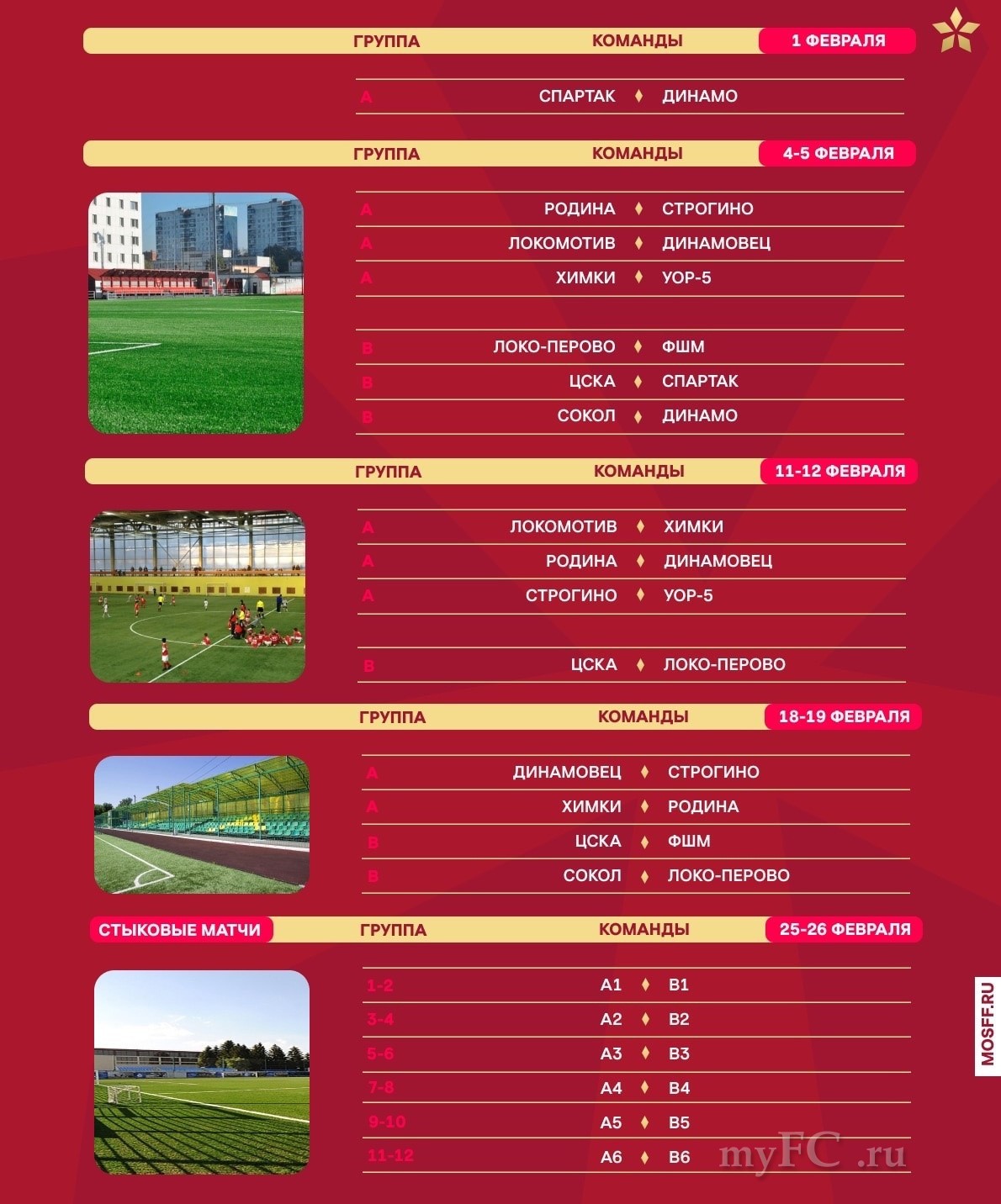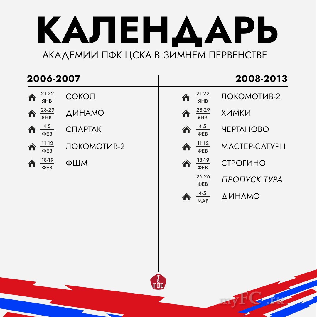 Календарь игр Академии ПФК ЦСКА в Зимнем первенстве (команды 2008-2013 г.р.)