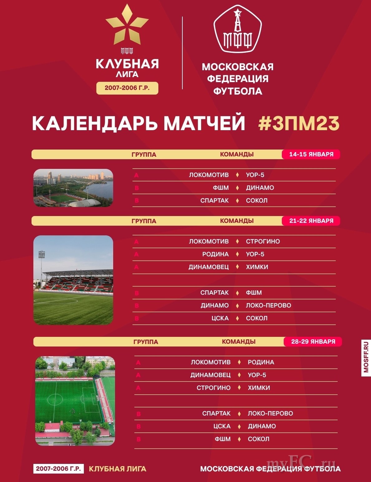 Представляем Вашему вниманию календари группового этапа Зимнего Первенства Москвы.