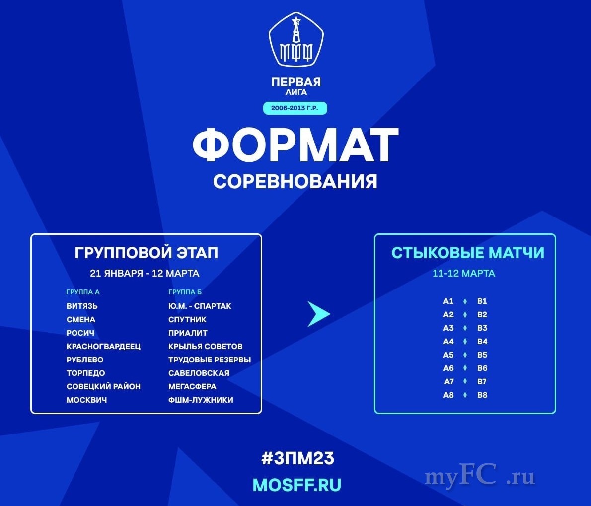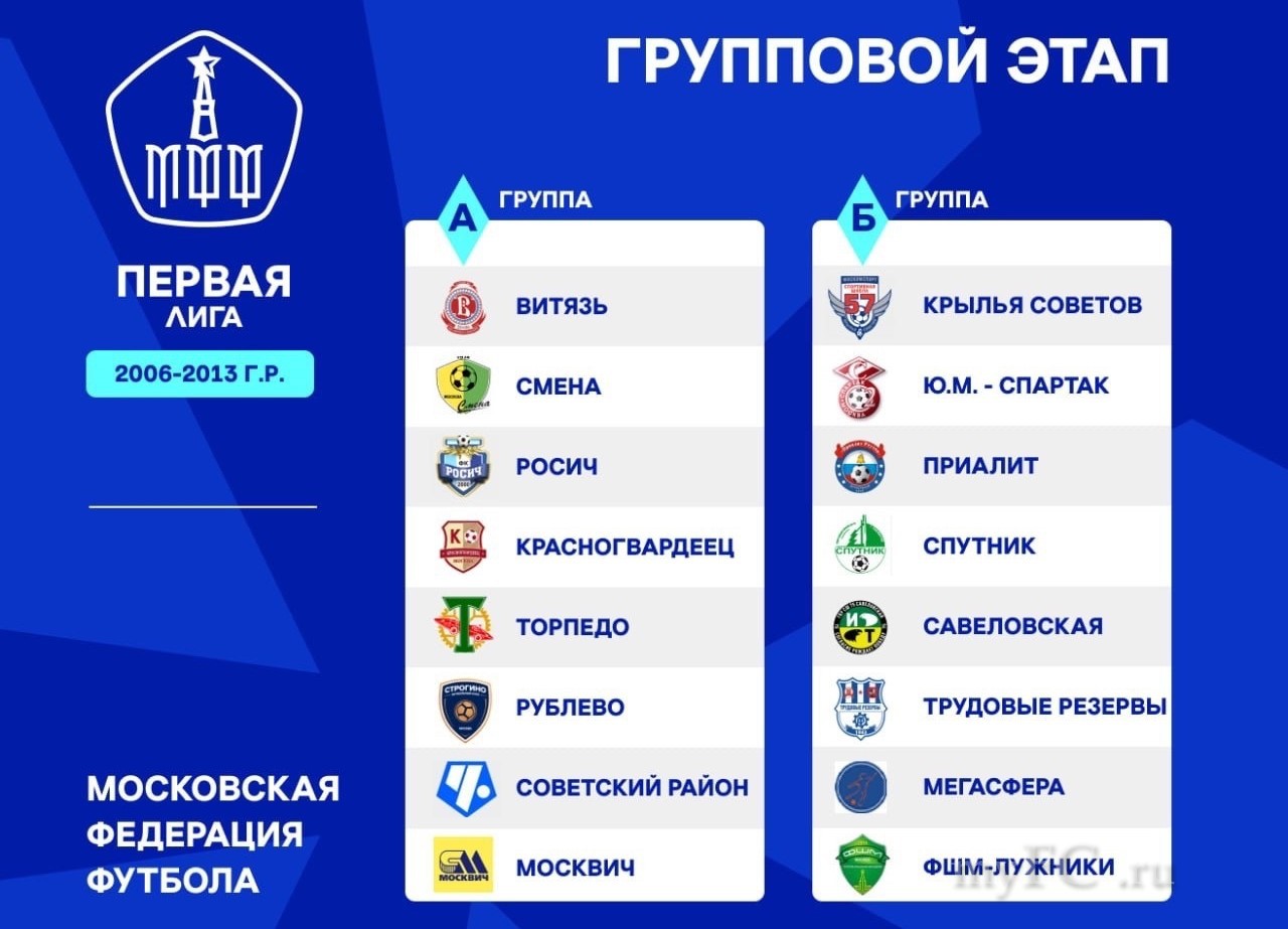 Команды «Клубной лиги» младших возрастов (2008-2013 г.р.) поделены на две подгруппы. Наша Академия в главном дивизионе Первенства Москвы представлена тремя коллективами: ФШМ начнёт свой путь в группе А, "Строгино" и "Сокол" выступят в группе Б. Турнирная дистанция на групповой стадии получится короткой: каждая команда сыграет с каждым из соперников только по одному разу. И права на ошибку, можно сказать, нет, потому что от места в группе будет зависеть, сможет ли та или иная команда побороться за медали. Победители групп А и Б встретятся между собой в финале, вторые места разыграют «бронзу» и т.д.