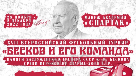 28 ноября в манеже «Спартака» стартует XVII юношеский турнир «Бесков и его команда» памяти заслуженного тренера СССР К.И. Бескова.