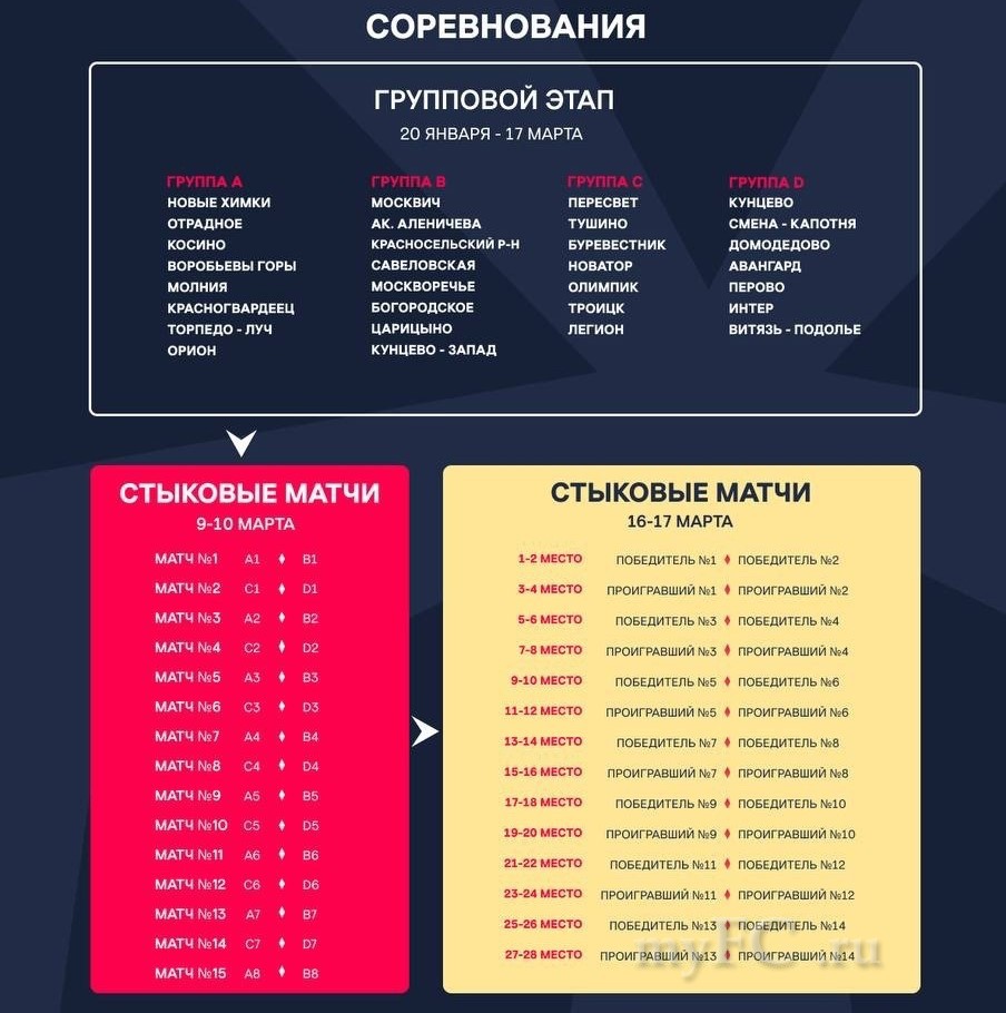 Зимнее Первенство Москвы 2024 пройдёт таким образом с 20 января по 10 марта. Расписание есть, составы групп есть, запасайтесь терпением, и совсем скоро, после праздников, мы ворвёмся в соревновательный процесс.