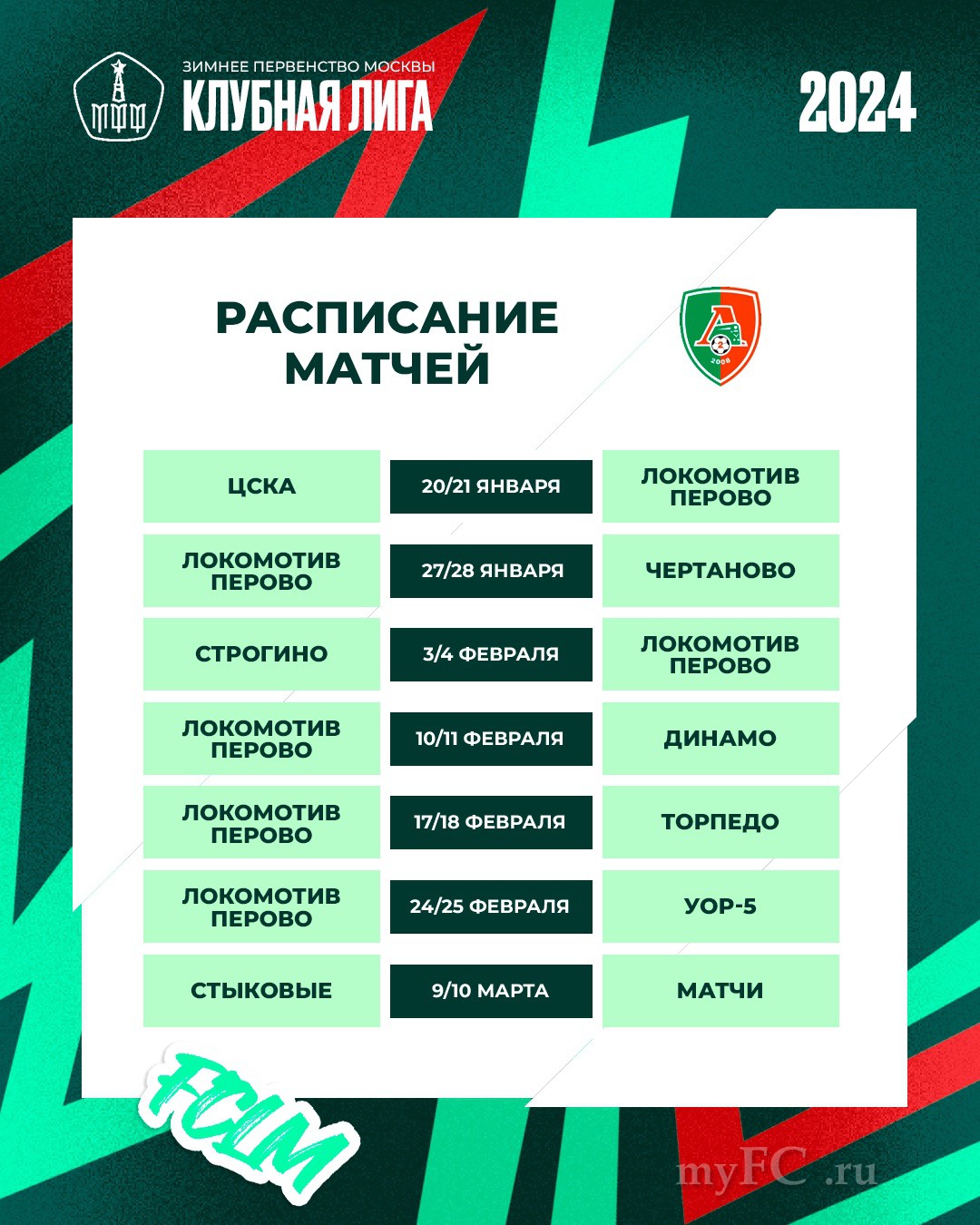 Расписание матчей Зимнего первенства для «Локо» и «Локо-Перово»