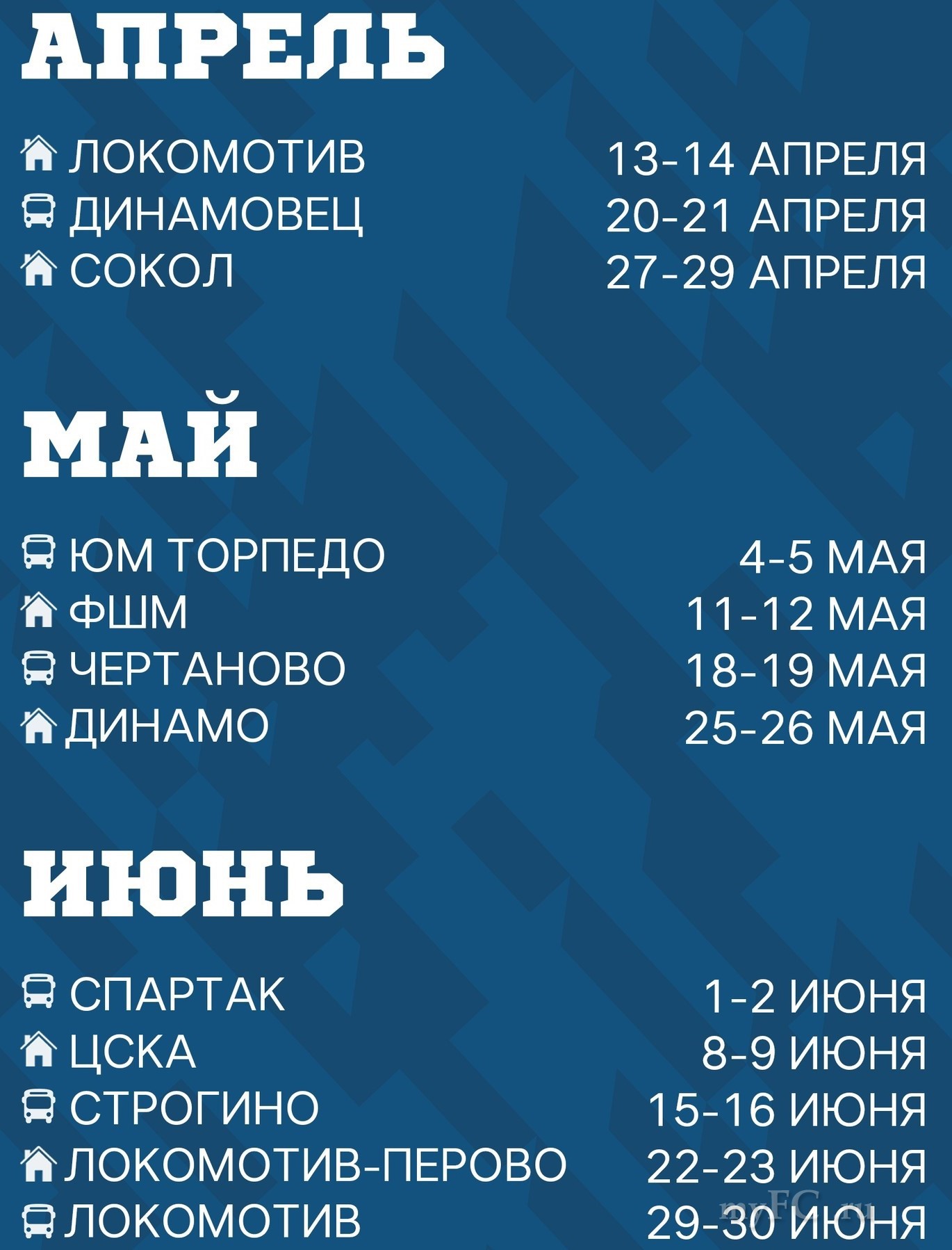 Наши соперники:– «Локомотив-Перово» (13/14 апреля; 29/30 июня)