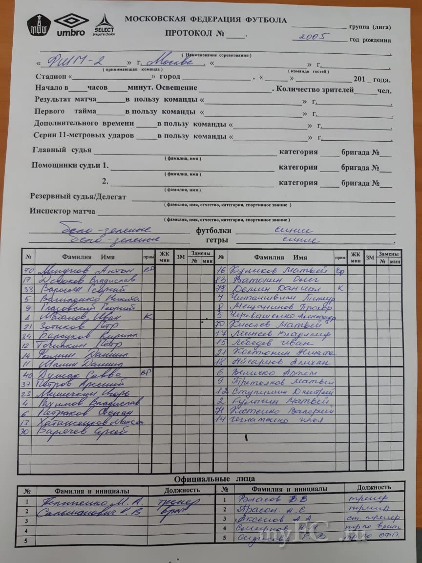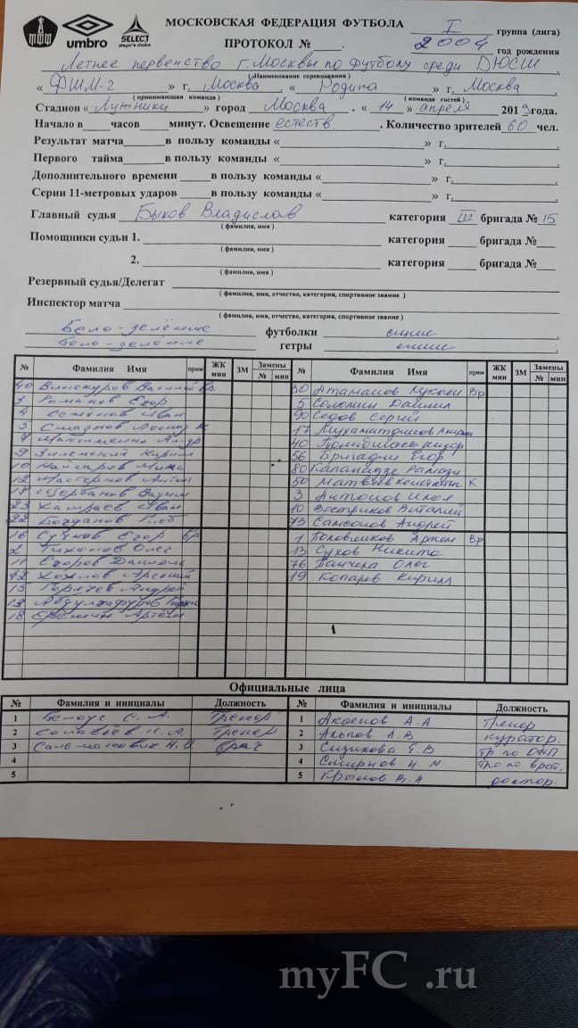Внимание! Если есть возможность, скиньте, пожалуйста, сегодняшние протоколы матчей зачетных возрастов Динамо-2 - Москвич, можно в личку.