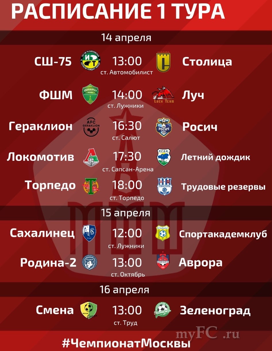 Уже завтра стартует #ЧемпионатМосквы среди любительских футбольных клубов!