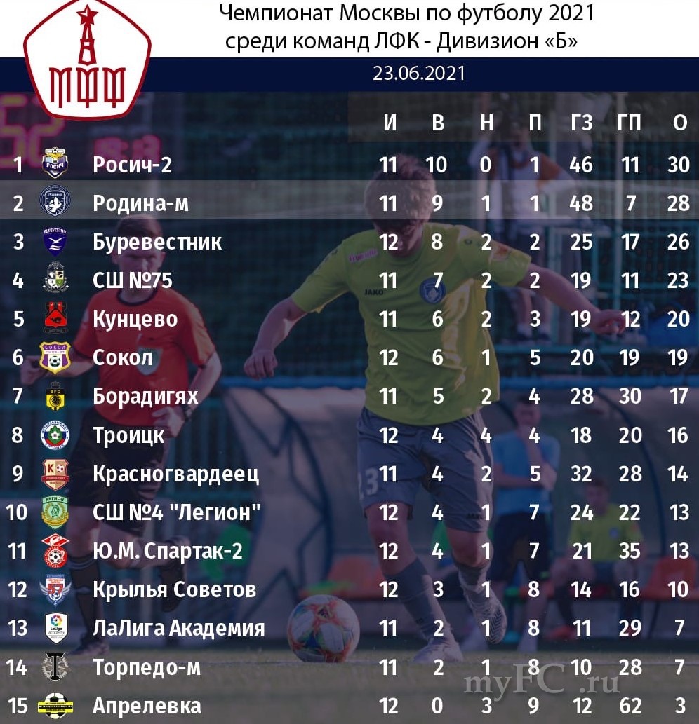 Однако две победы с общим счетом 17:0 не позволили команде оказаться на первой строчке в турнирной таблице. Лидирующий "Росич-м" также осечек не допускал. Во вторник команда Алексея Васильева обыграла "Троицк" (4:1), а в пятницу прошлась по "Красногвардейцу" (6:1). В первой встрече хет-триком удалось отметиться Евгению Панулину, который на данный момент с 16-ю мячами возглавляет гонку бомбардиров.