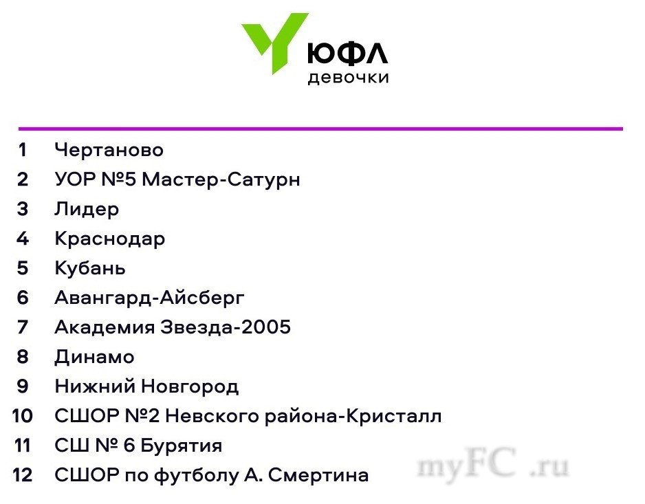 Максим Митрофанов, генеральный секретарь РФС:– В первом сезоне ЮФЛ-девочки предпочтение отдано школам, имеющим вертикаль подготовки девочек и показавшим хорошие спортивные результаты в соревнованиях 2021 и 2022 годов. А также клубам, имеющим команду ЮФЛ-девушки в возрасте до 16 лет. Мы рассчитываем, что новое соревнование будет стимулировать появление игроков младшего возраста и обеспечит непрерывную подготовку футболисток в структуре клубов.