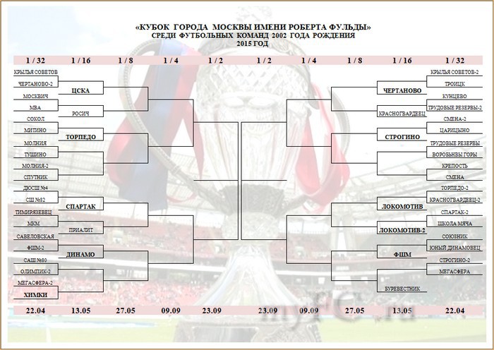 1/16 стадия финала Кубка Москвы имени Роберта Фульды (левая половина сетки).