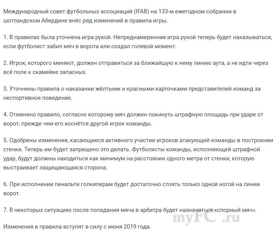 Изменения в правилах вступили в силу (Новые правила вступят в силу с июня 2019 года) - https://www.eurosport.ru/football/story ... yandex.com