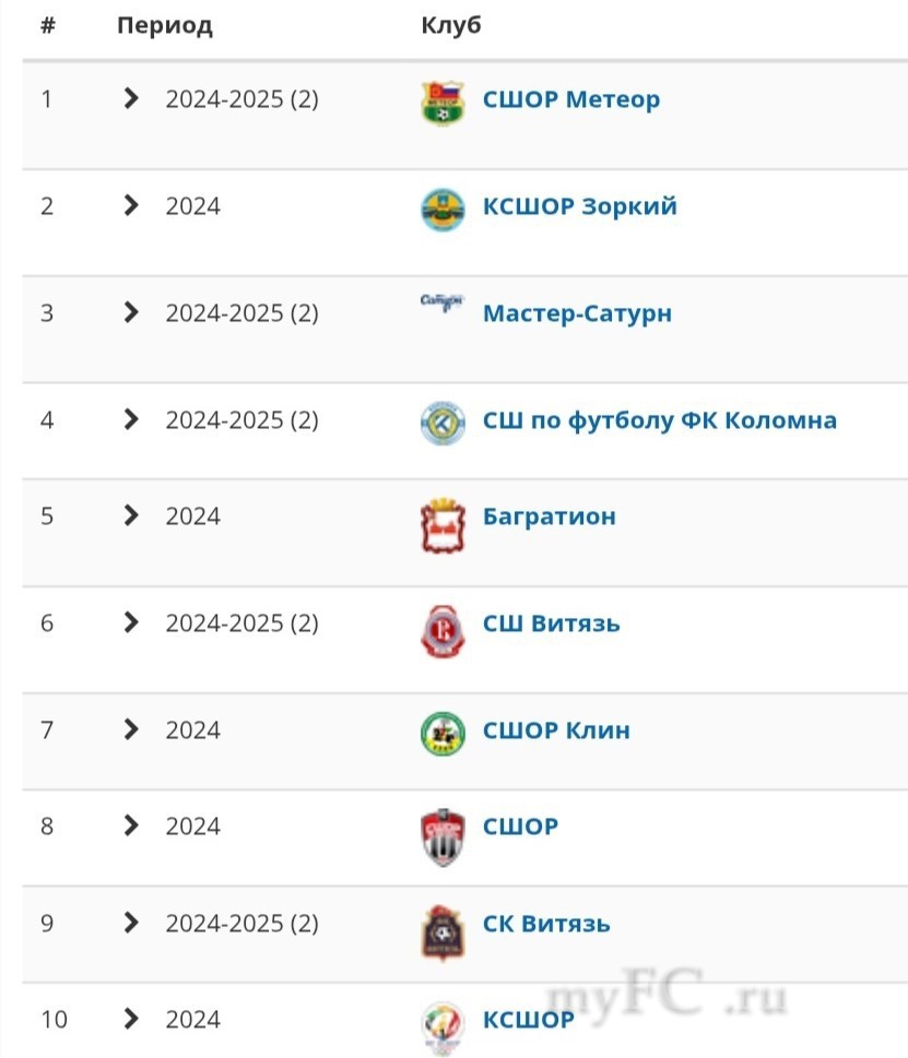 В рейтинге клубов Федерации футбола Московской области за 2024 год из 150 организаций СШ "Витязь" заняла 6 место.
