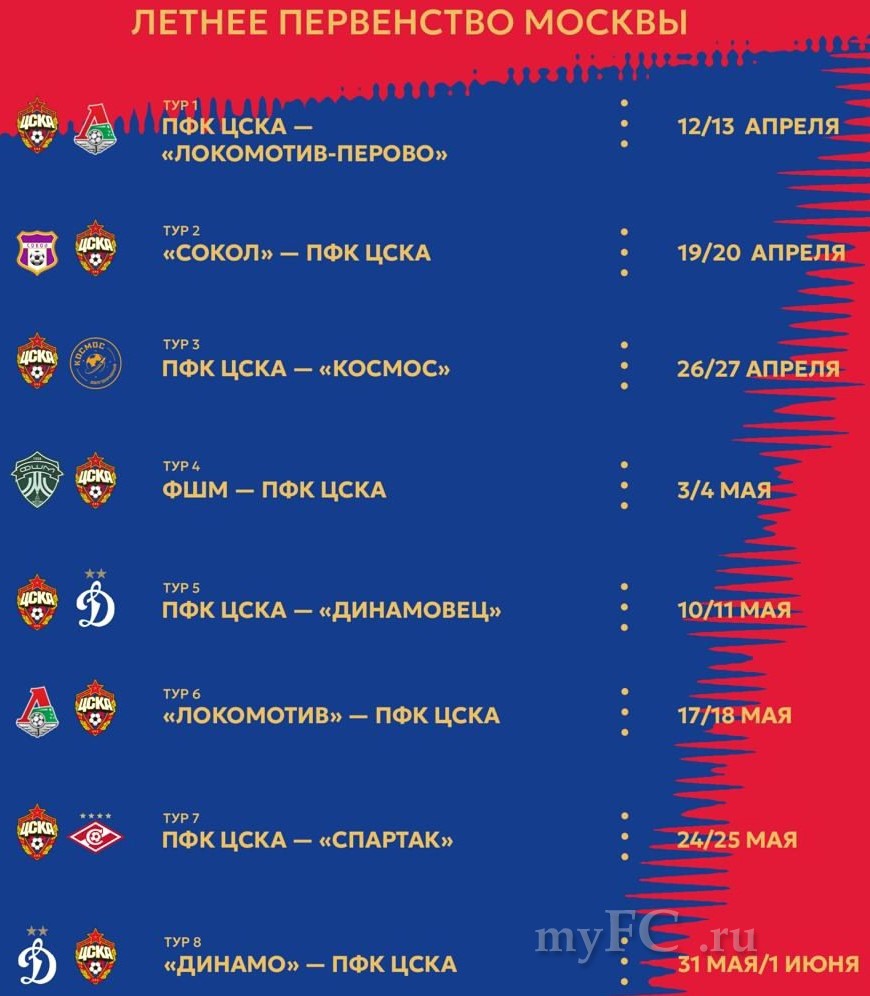 ЦСКА (21/22 июня, в гостях; 25/26 октября, дома).