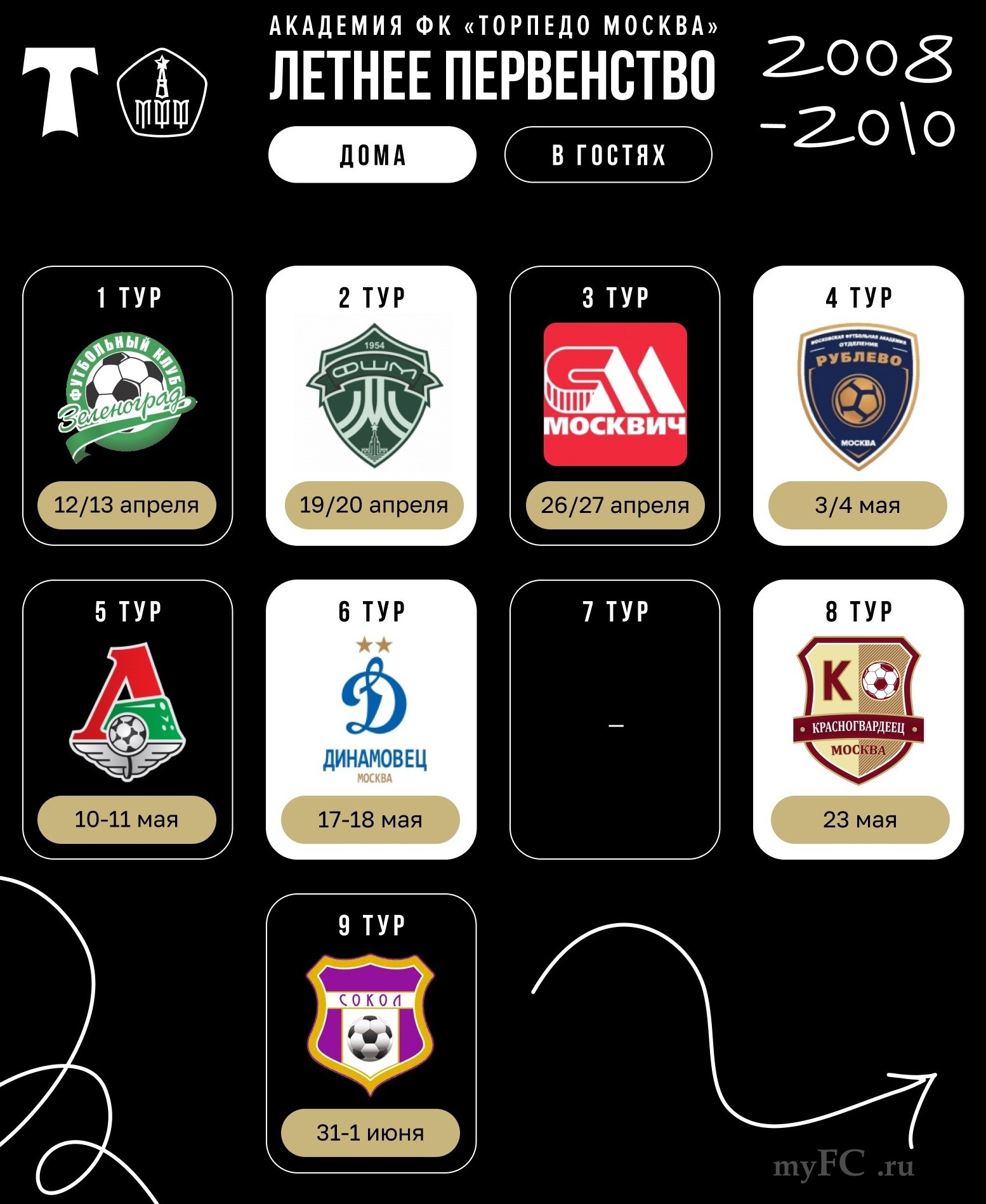 Календарь Летнего Первенства Москвы для команд 2008-2010 годов рождения